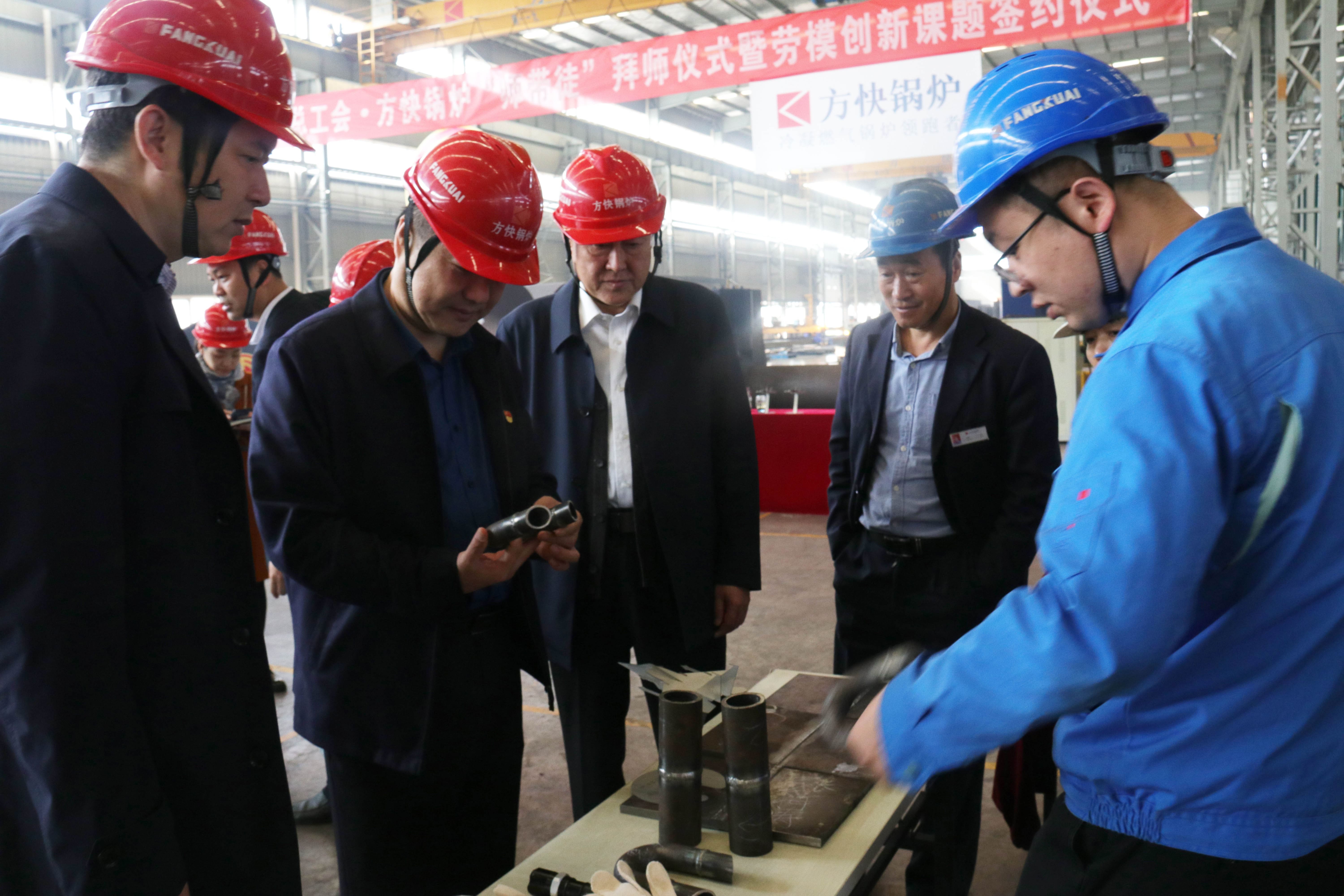 11月5日上午,在我市總工會勞經(jīng)部長康小兵,我區(qū)總工會主席宋軍等政府領(lǐng)導(dǎo)和我司質(zhì)量經(jīng)理姜連菊、生產(chǎn)經(jīng)理胡翔等企業(yè)高層的見證下,2019年方快鍋爐“青藍(lán)工程”拜師儀式正式啟動。