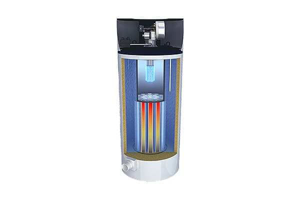 方快容積式熱水鍋爐系列設(shè)計(jì)為燃燒器下置式煙火管容積式結(jié)構(gòu),燃料經(jīng)燃燒器霧化后在爐膽內(nèi)微正壓燃燒,高溫?zé)煔庠跔t膽內(nèi)進(jìn)行輻射換熱后進(jìn)入煙火管對(duì)流換熱后經(jīng)下煙室排出。通過(guò)采用計(jì)算機(jī)輔助設(shè)計(jì),優(yōu)化各個(gè)受熱面,爐體結(jié)構(gòu)設(shè)計(jì)更加合理。 鍋爐無(wú)需冷凝器,爐體內(nèi)部即可實(shí)現(xiàn)冷凝,排煙溫度可低至50℃以下,熱效率可達(dá)106.6%以上。
