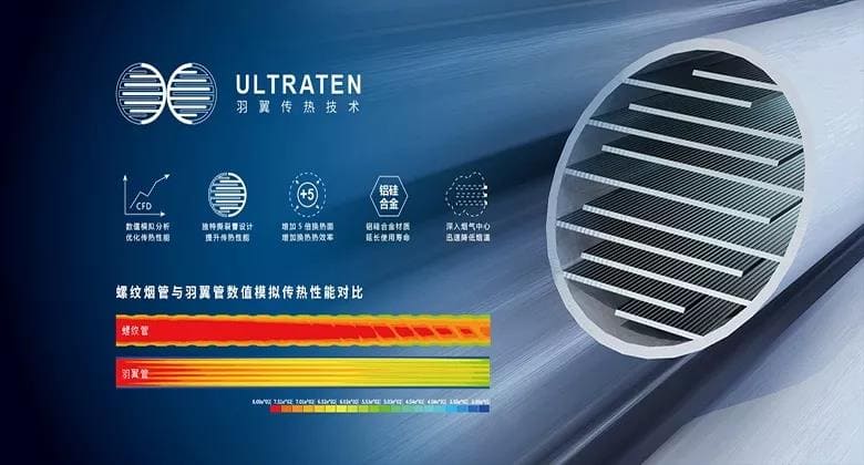 兼并傳熱和冷凝的功能,是煙氣復合傳熱的一種體現,該傳熱元件單位條件下,超普通光管5 倍的換熱面積,材質采用硅鋁合金,不僅增加換熱效率且耐腐蝕。 傳熱元件深入到煙氣中心,羽翼管特殊的撕裂槽設計,很好的消除冷凝液膜對傳熱的影響, 迅速降低煙氣溫度
